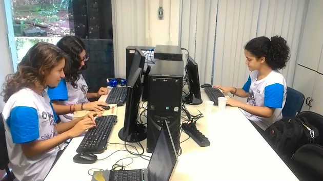 Depois de almoçarmos, eu, a Amanda, a Mirian, a Gaby e o Léo fomos conhecer a biblioteca do Instituto de Filosofia e Ciências Humanas (IFCH). Fiquei surpresa com a grande quantidade de livros com assuntos diferentes que encontrei por lá.
