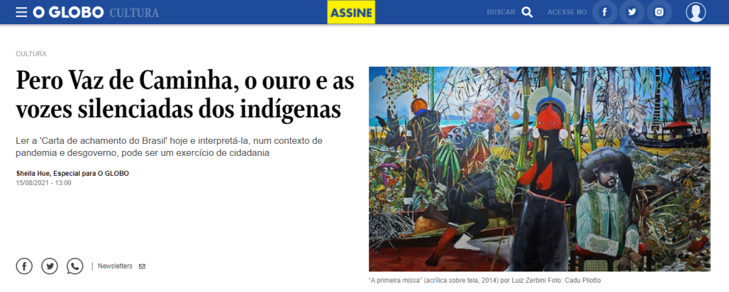 Artigo sobre o livro Carta de achamento do Brasil foi publicada no site do jornal O Globo em 15 de agosto de 2021.