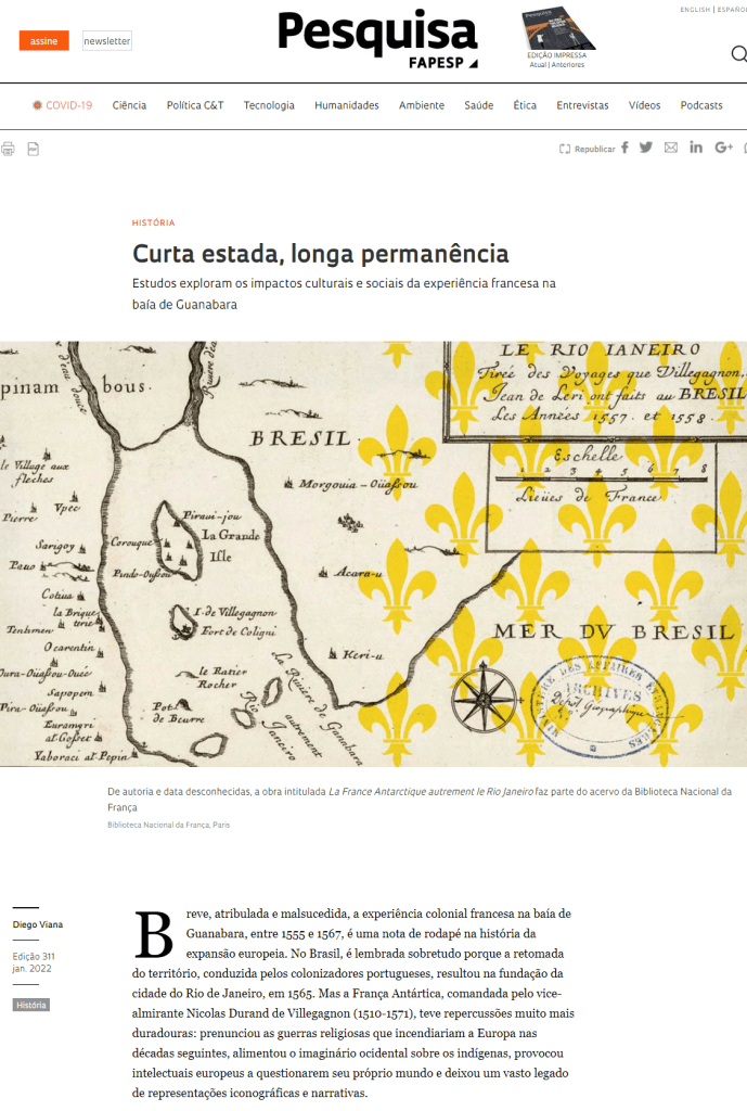 Com a contribuição de historiadores, musicólogos, linguistas e especialistas de outras disciplinas, o livro França Antártica: Ensaios interdisciplinares (Unicamp, 2020) explora esse legado múltiplo para situar o breve episódio da história do Brasil em um contexto mais amplo do que o relato da reconquista portuguesa. O que representou para os povos originários? Como se relaciona com o que ocorria na Europa e com a expansão colonial? Como afeta a visão atual da formação do país? “Exceto pela fundação do Rio, a ocupação da América portuguesa não teria sido muito diferente se não houvesse franceses na Guanabara”, avalia a historiadora da arte Maria Berbara, do Departamento de História e Teoria da Arte da Universidade do Estado do Rio de Janeiro (Uerj) e uma das organizadoras da obra. “Mesmo assim, a França Antártica legou um enorme repertório de textos, imagens, ideias e conceitos, que ajudou a moldar a imagem do Brasil e das Américas.”