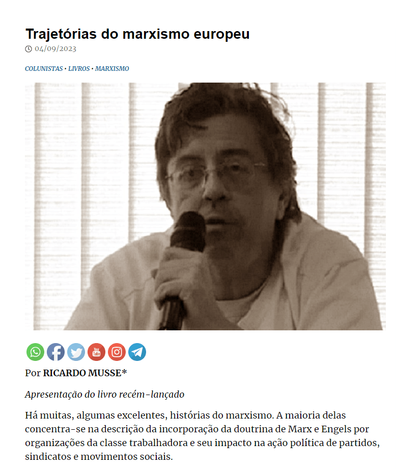 Ricardo Musse. Trajetórias do marxismo europeu. Campinas, Ed. Unicamp, 2023, 220 págs.