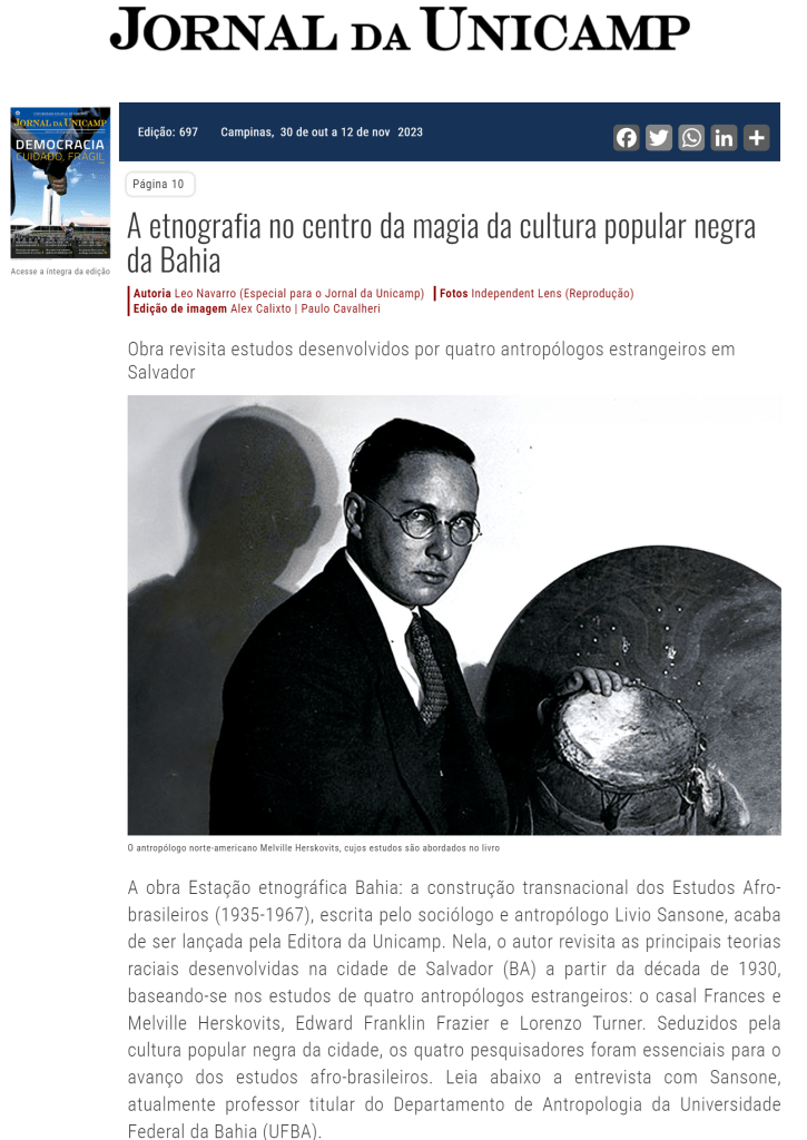 Livio Sansone – Tive duas ordens de problemas. Por um lado, pesquisar agendas e trajetórias de pesquisadores (prevalentemente) norte-americanos a partir de Salvador – uma cidade situada no Sul do Sul Global – representa em si um desafio, devido à falta de bons arquivos e bibliotecas locais, assim como uma certa precariedade da Fundação de Amparo à Pesquisa do Estado da Bahia (Fapesb). Por outro lado, o pouco tempo disponível para pesquisa, as distâncias e a dificuldade em angariar recursos para poder viajar rumo aos Estados Unidos e à França, onde se encontram os arquivos mais importantes, têm me obrigado a basear minha pesquisa em curtas e superintensivas missões de pesquisa, intercaladas por longos períodos aproveitados para estudar e sistematizar os documentos. Preciso acrescentar que minha pesquisa não teria sido exequível sem a ampla rede de colegas, distribuídos em muitas universidades, sobretudo do Norte Global, que, com grande abnegação e generosidade, têm compartilhado comigo documentos, matérias e publicações. Devo muitíssimo a essa generosidade digital!