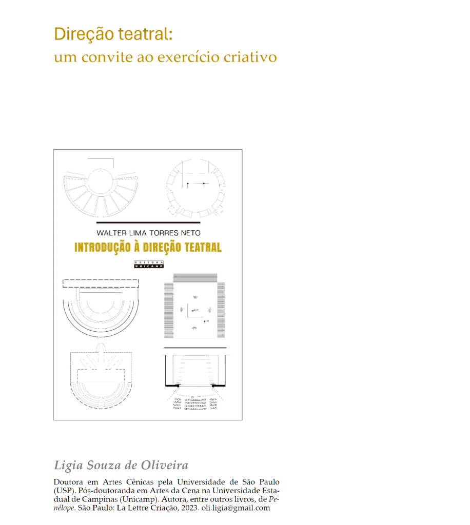 Ligia Souza de Oliveira TORRES NETO, Walter Lima. Introdução à direção teatral. Campinas: Editora Unicamp, 2021, 239