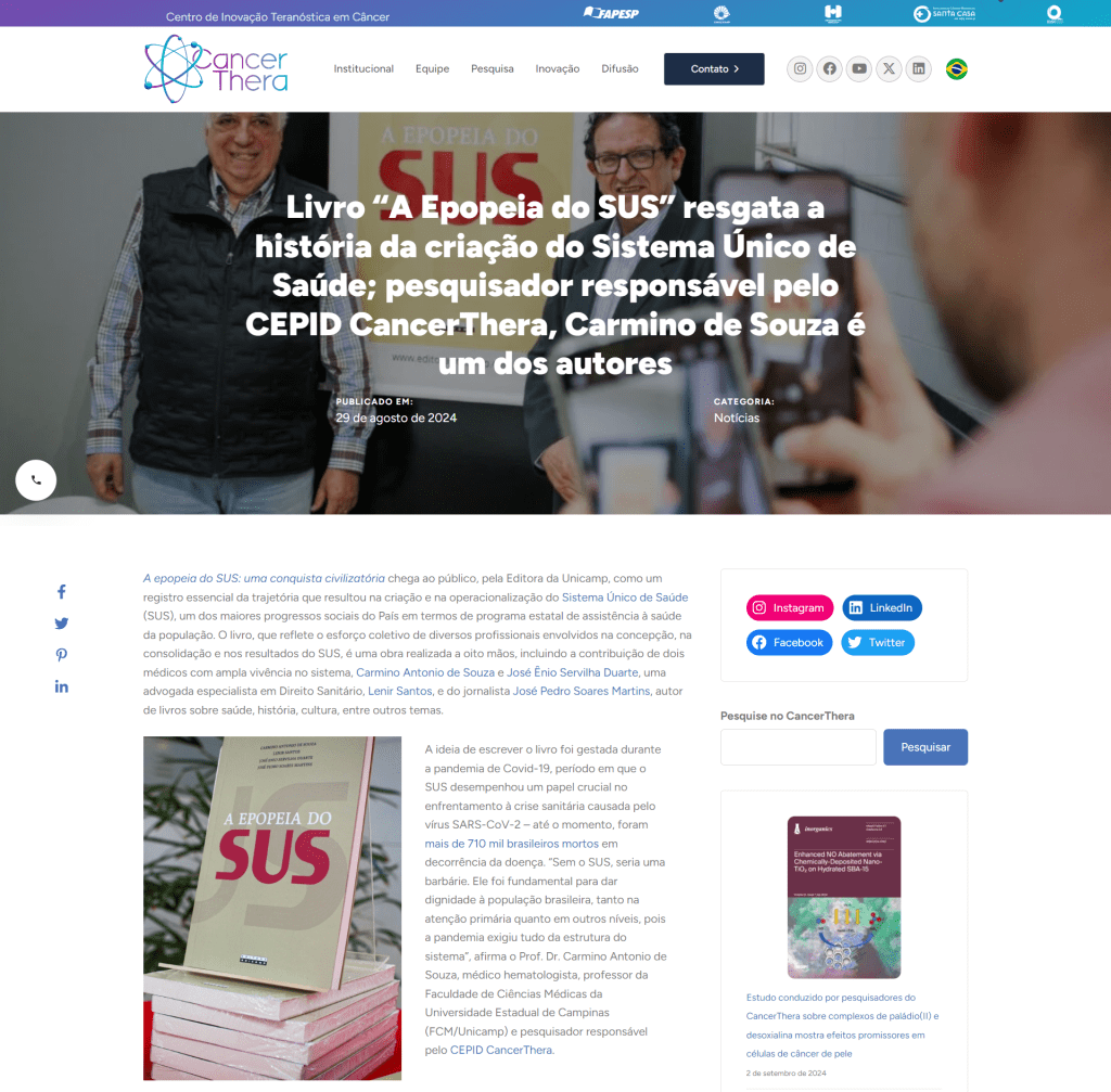 Em 27 de agosto, ambos estiveram presentes no Espaço das Artes da FCM/Unicamp para a terceira sessão de lançamento do livro (outras sessões ocorreram em Campinas e São Paulo anteriormente). A Unicamp teve uma participação crucial, por meio de profissionais que nela atuaram, para pavimentar os caminhos que levaram à inclusão do SUS na Constituição Federal de 1988, portanto, o lançamento local do livro e a edição ter sido realizada pela editora que leva o nome da instituição foram também formas de celebração do papel relevante da universidade na exitosa concepção do sistema.Clique no álbum para acessar as legendas e baixar as fotografias. Você também pode visualizar tudo neste link.