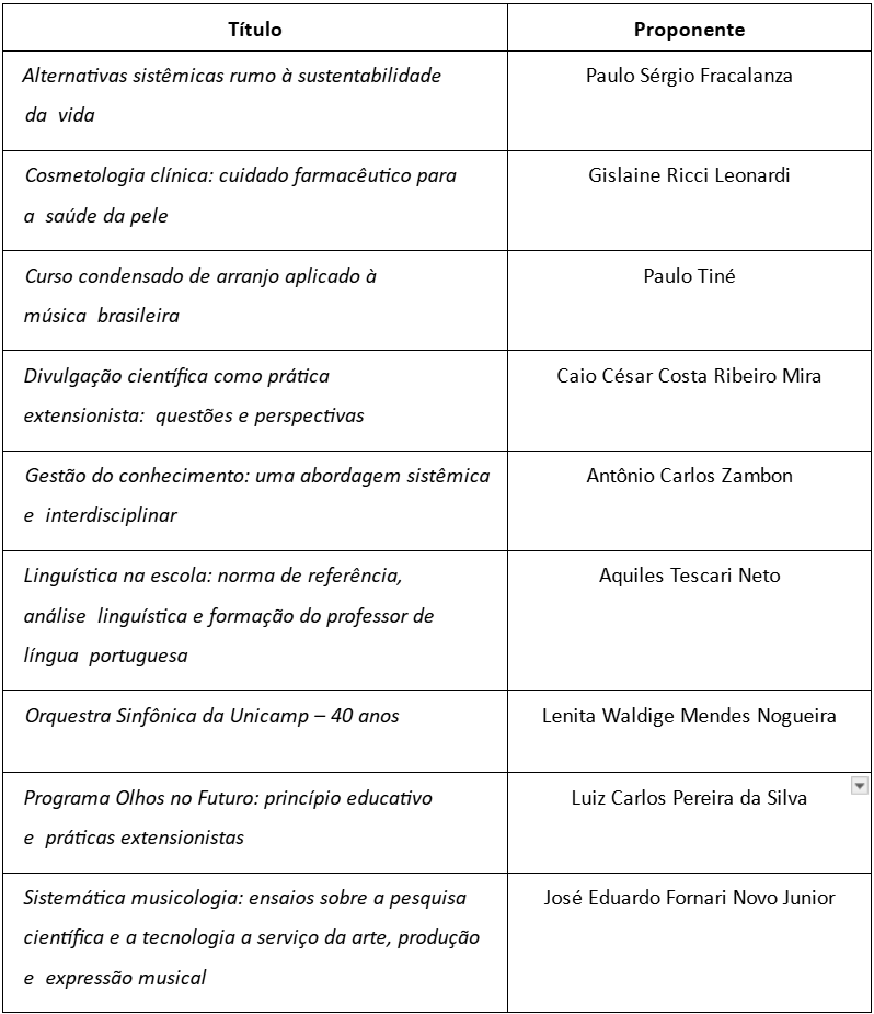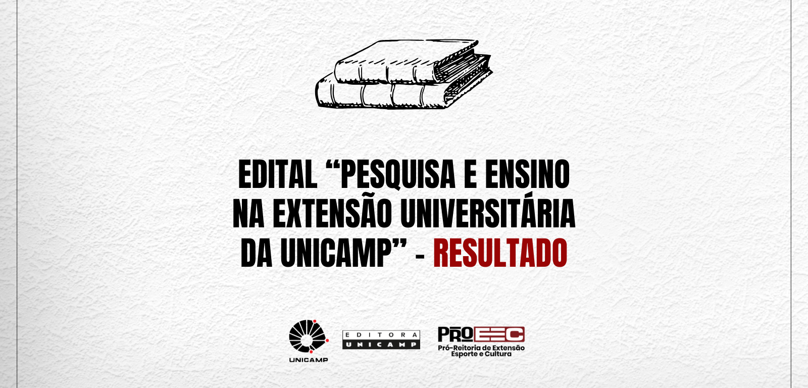 A Editora da Unicamp torna público o resultado final da seleção de obras inscritas no Edital de publicação de obras de caráter extensionista (biênio 2024-2025), cujos termos foram divulgados no início de 2024 (https://editoraunicamp.com.br/site/editais).