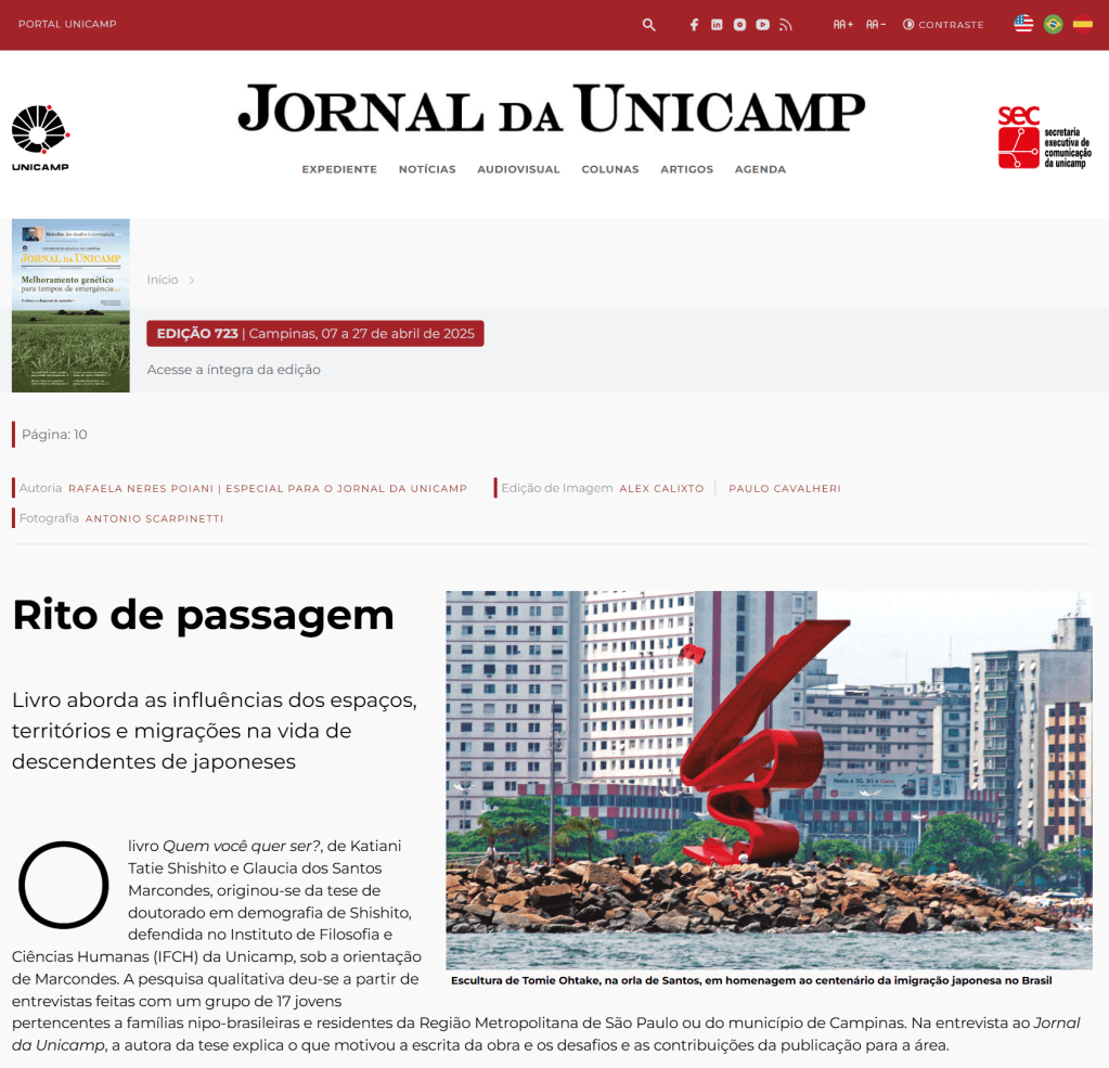 Katiani Tatie Shishito – A obra surgiu na intersecção entre os estudos migratórios e os estudos de família. Uma primeira contribuição está em entrelaçar os conhecimentos adquiridos em âmbito acadêmico de forma mais integral, como acontece na vida em si. Para os estudos migratórios, a principal contribuição vem no sentido de focar um grupo etário pouco explorado nas pesquisas sobre a chamada “segunda geração de imigrantes”, ou seja, os filhos de migrantes que nascem nos países de destino. Essa área tinha até então seu foco bastante voltado para as crianças e suas questões educacionais e de linguagem. Nossa pesquisa trabalhou na exploração da continuidade de vida dessas crianças, inserindo-se também, dessa forma, nos estudos sobre as juventudes. A pesquisa contribui para os estudos de família ao questionar as expectativas sociais e demográficas na transição para a vida adulta, especialmente em contextos migratórios.