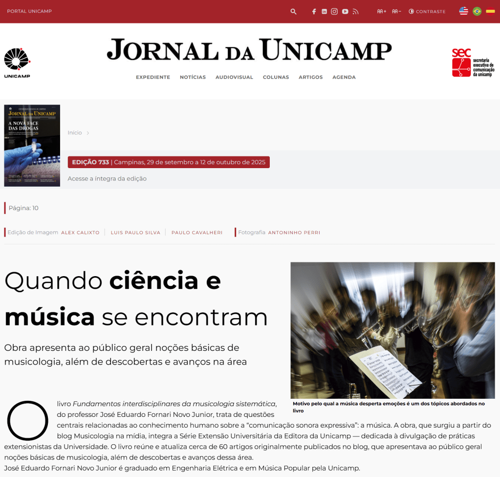 José Eduardo Fornari Novo Junior — Este livro teve origem a partir do material de um blog de ciência da Unicamp, para o qual eu escrevi cerca de 60 artigos curtos, respondendo a questões sobre o estudo e a pesquisa científica relacionada à música. Este blog se chamava Musicologia na mídia. O material que produzi foi posteriormente expandido, revisado, readequado e, assim, culminou no referido livro.
