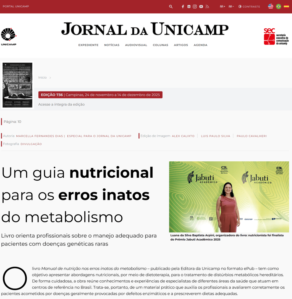 Luana Arpini – O manual traduz o conhecimento científico em orientações práticas, transformando um assunto considerado complexo em algo aplicável. Dessa forma, auxilia o profissional a conduzir o manejo nutricional de forma individualizada e segura, estimulando sua autonomia diante de doenças metabólicas raras e complexas. Ele fornece protocolos adaptados, descreve características de tratamentos disponíveis no país, orienta ajustes dietéticos conforme o crescimento e oferece materiais de apoio para uso na rotina clínica.