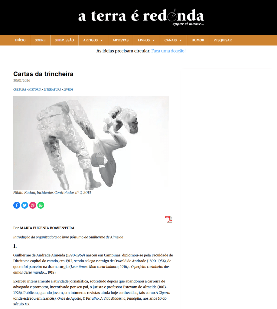 Maria Eugenia Boaventura (org.). Cartas da trincheira: correspondência entre Guilherme de Almeida e sua musa (1932). Campinas/São Paulo, Editora da Unicamp, Editora da Unifesp, 2025, 136 págs.